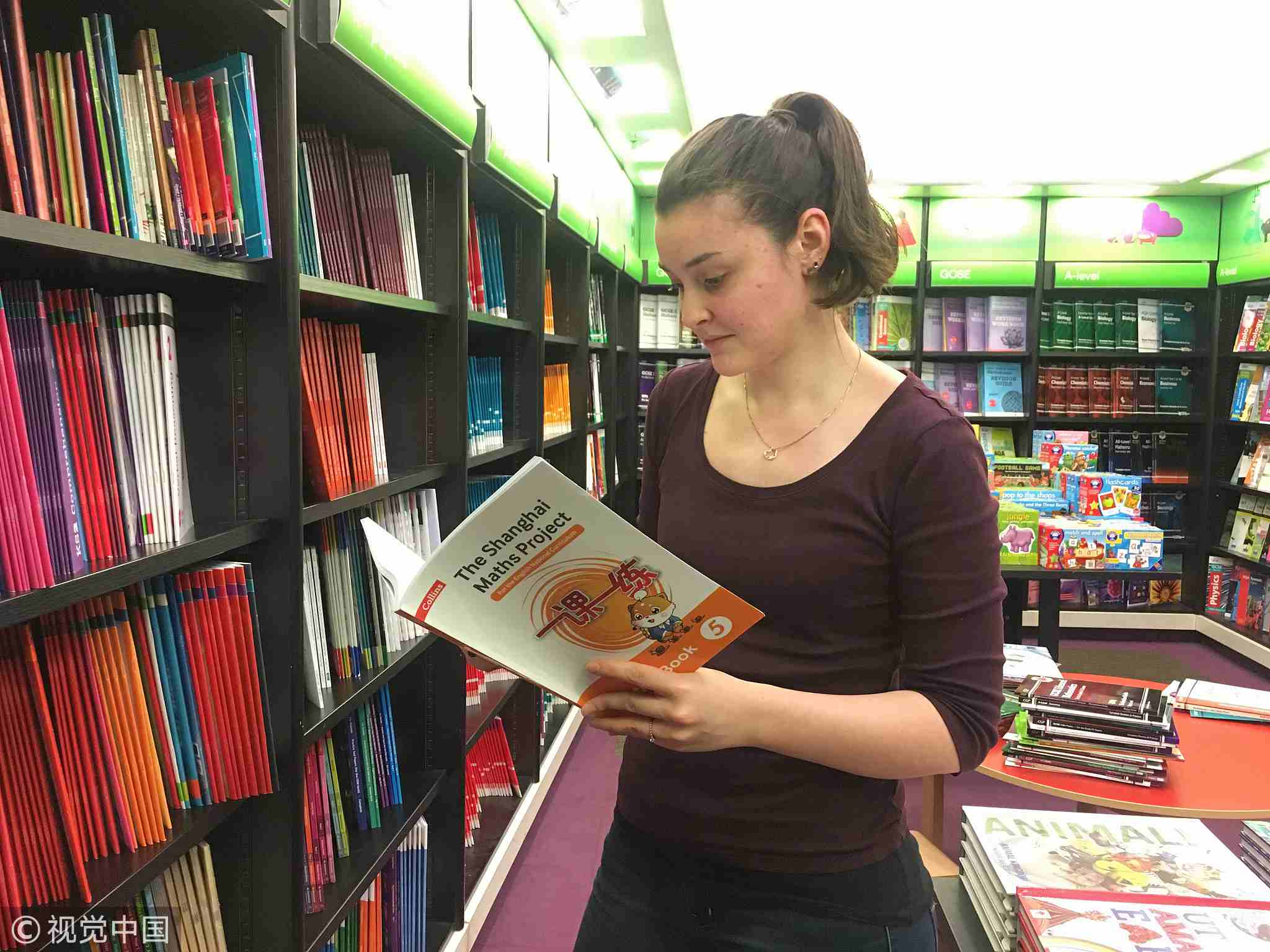 A woman reads the textbook of Shanghai's math project. /VCG Photo