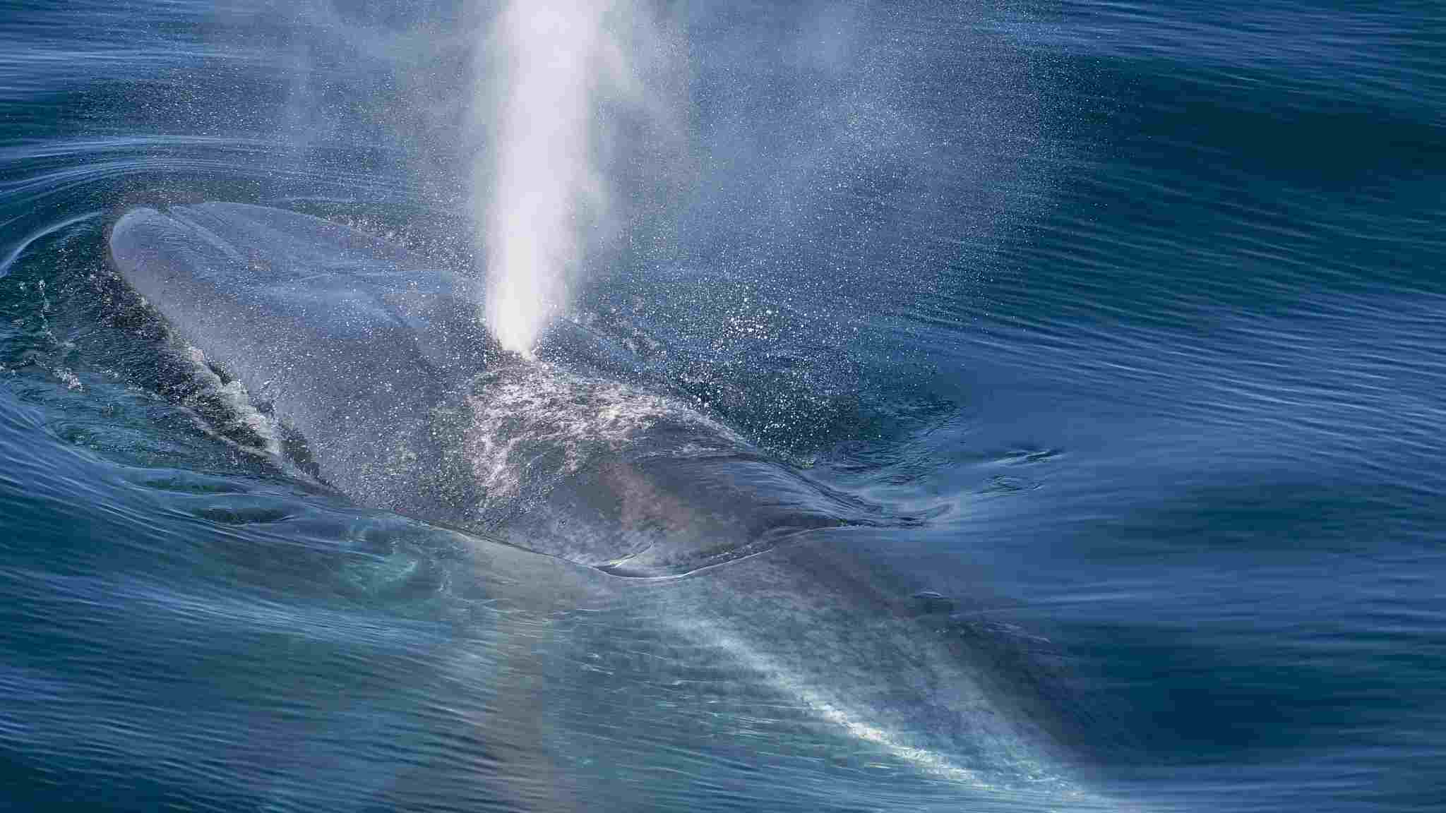 Hunting has been prohibited by the International Whaling Commission, but the blue whale is threatened by "the declining availability of krill, its primary food source."