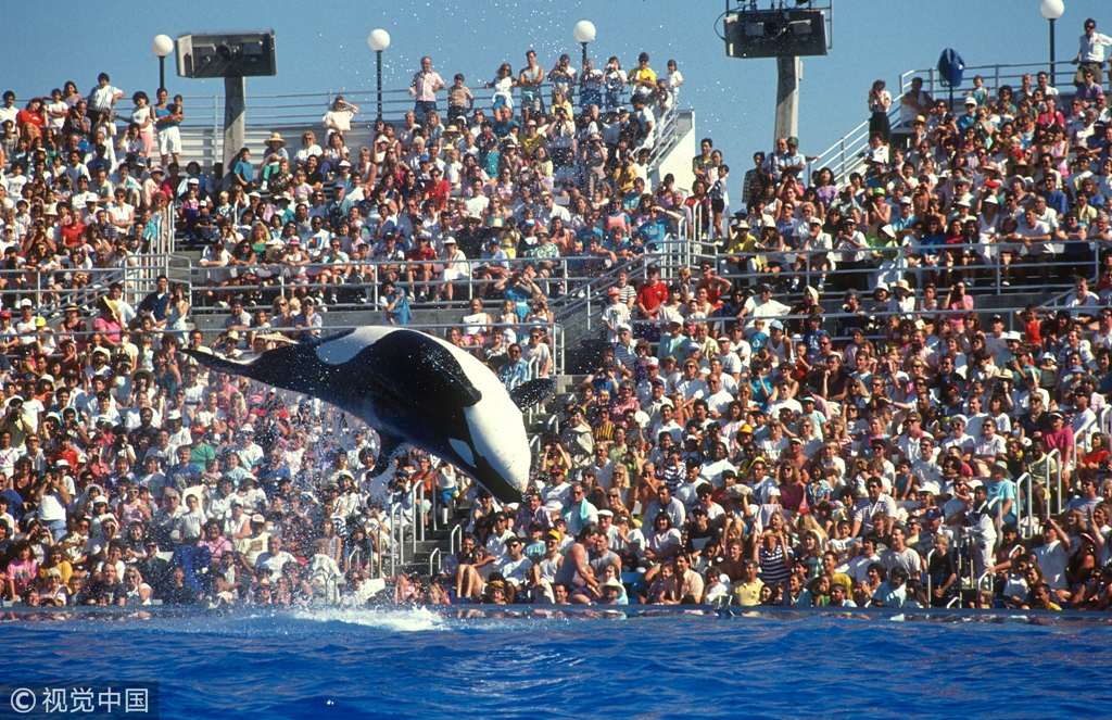Audiences watch orca performance at SeaWorld, San Diego, California, US. /VCG Photo