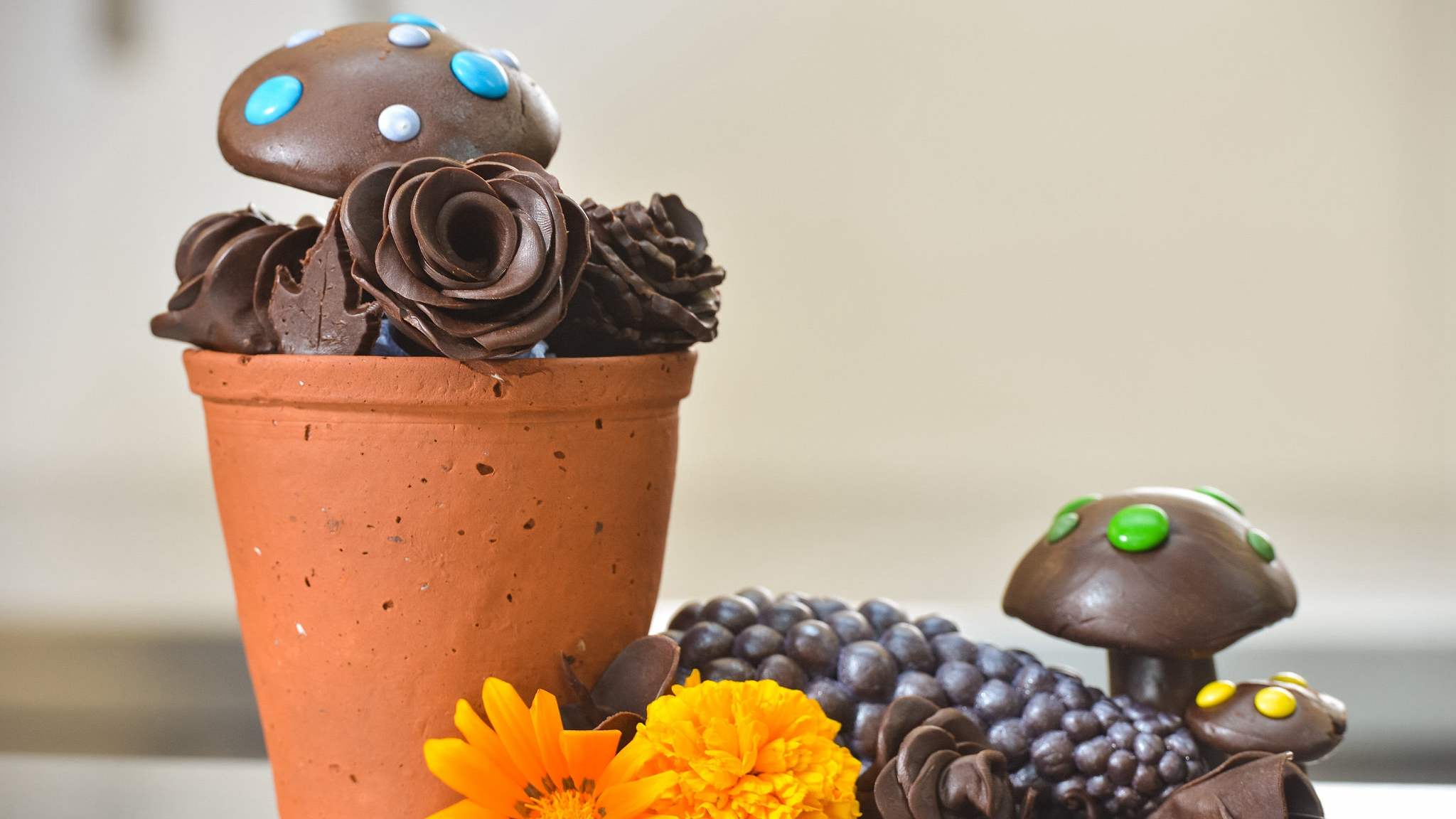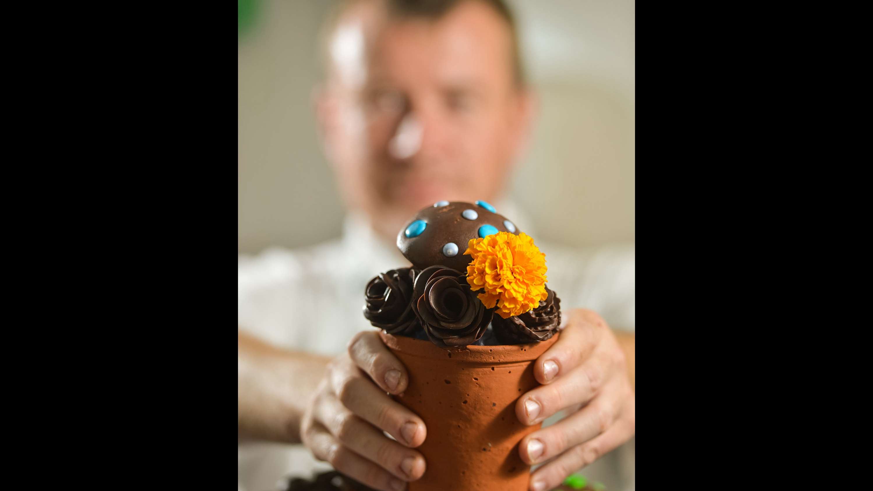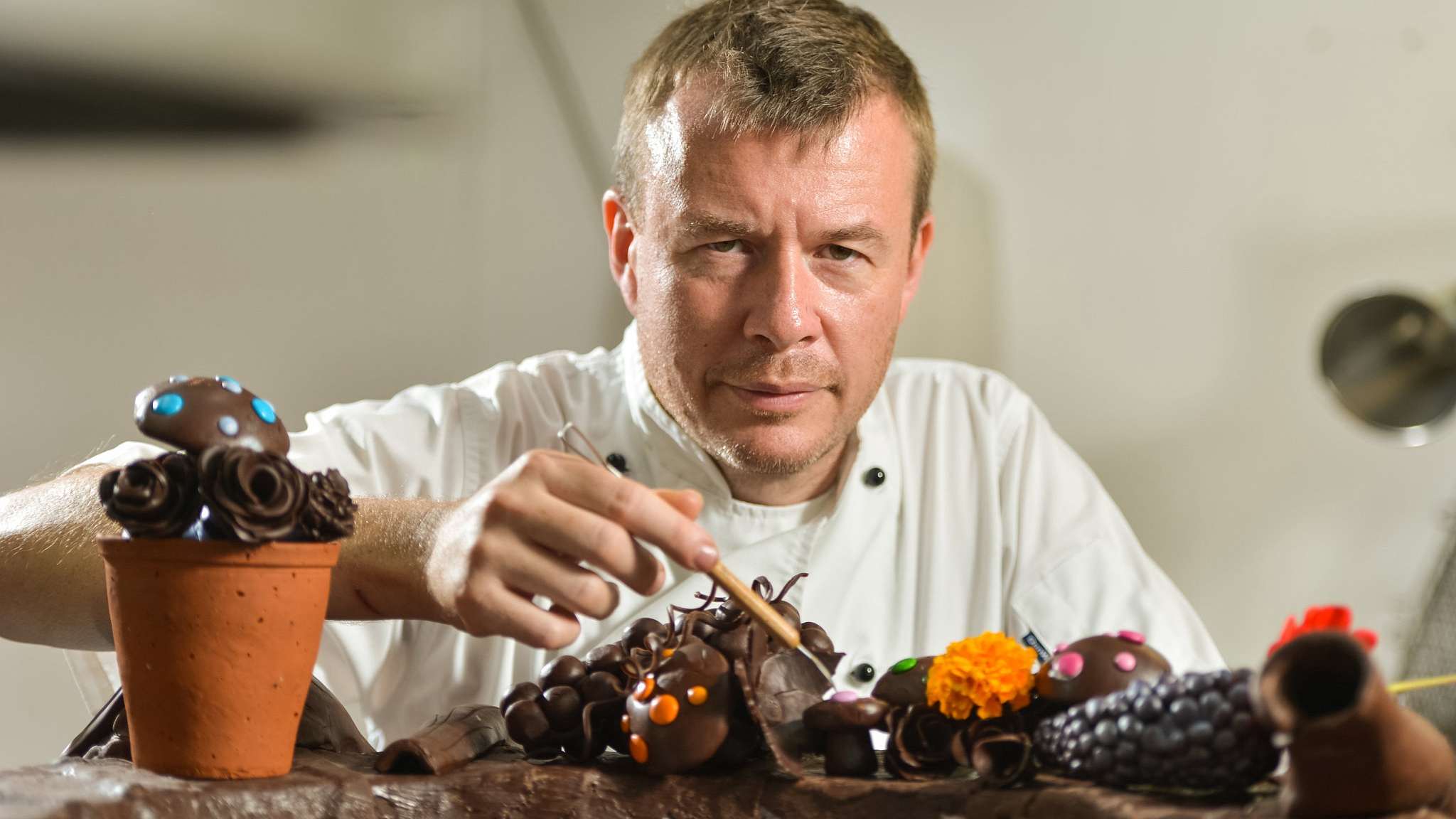 He created a chocolate flower display called “Tempered Garden,” with the help of designer Helen Hays and landscaper Nick Fryer. He used a month’s time and 30 kilograms of dark chocolate to achieve this. /VCG Photo