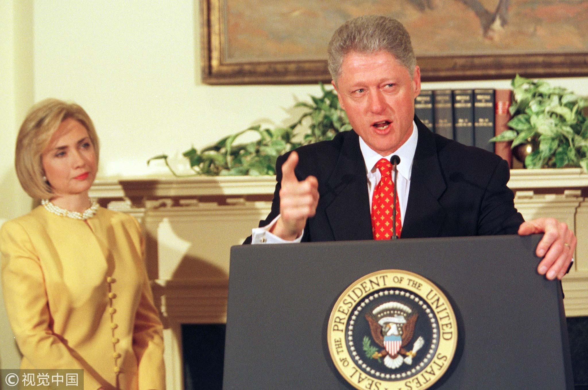 US President Bill Clinton delivers his strongest public denial of allegations that he had an affair with former intern Monica Lewinsky, during a news conference at the White House on January 26, 1998. /VCG Photo