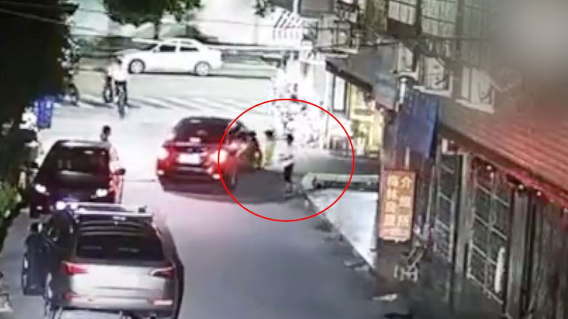 A little girl was run over by a car while playing on the street last week in east China's Zhejiang Province. Her older brother reacted fast and banged the car window repeatedly to alert the driver and stop the vehicle. The child walked away with only minor injuries.