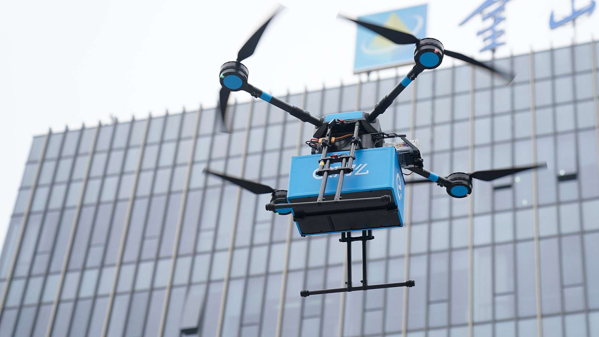 The delivery system is now under a trial run for a total of 17 aerial routes in Shanghai, with the goal to deliver food orders in 20 minutes. /VCG Photo