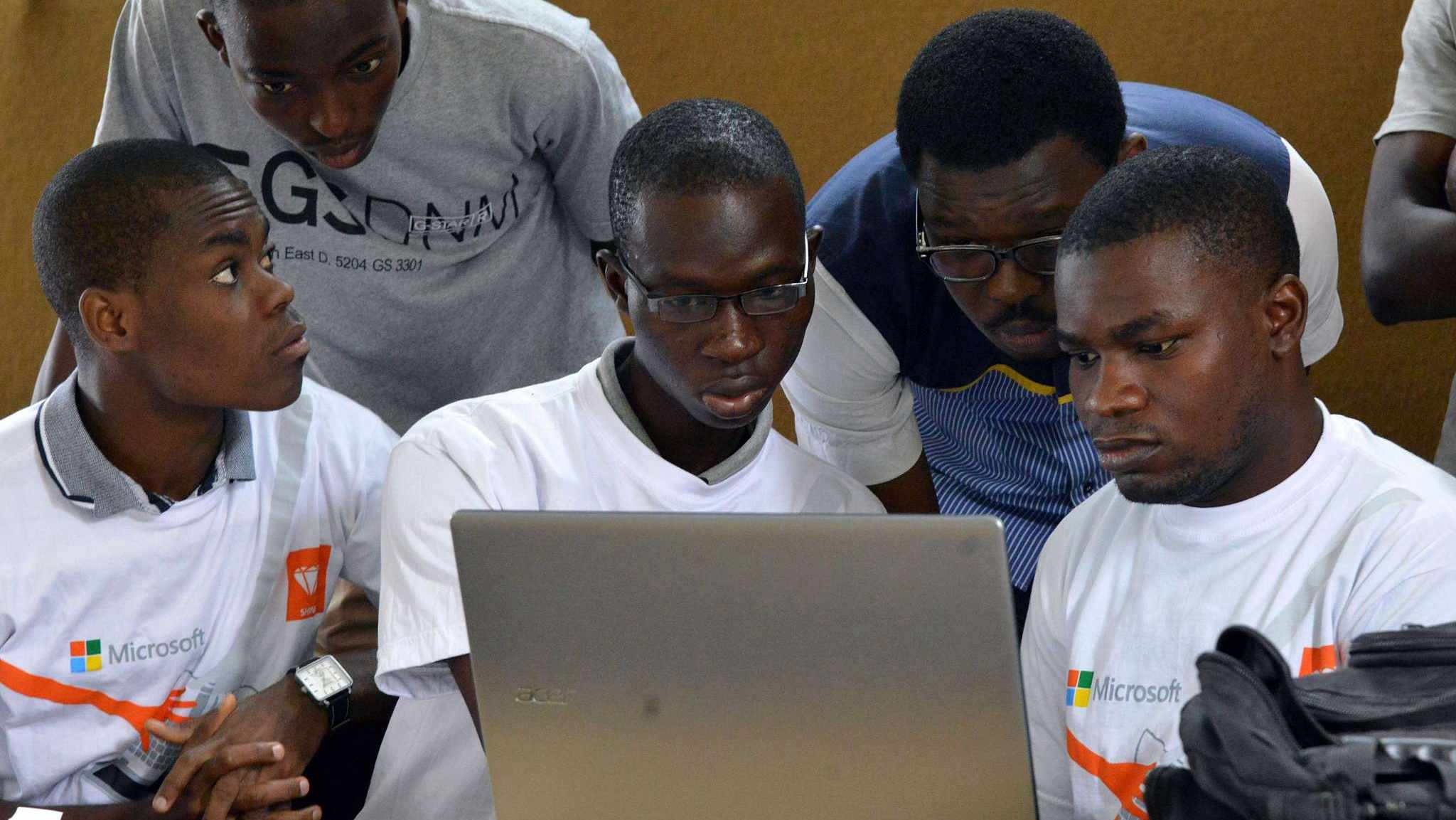 People participate in the 48-hour "hackathon" event, in which seven teams compete to develop innovative applications to facilitate access to information in Africa. /VCG Photo