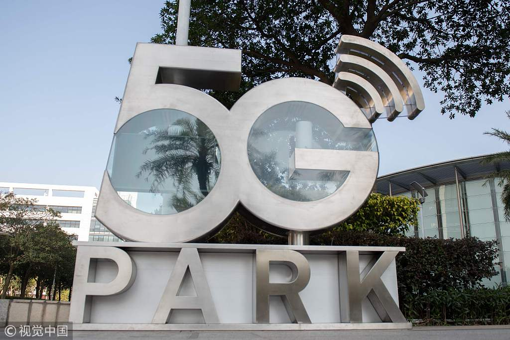 A sign that reads "5G park" is seen inside the Huawei global headquarters in Shenzhen in China's southern Guangdong Province, December 18, 2018. /VCG Photo