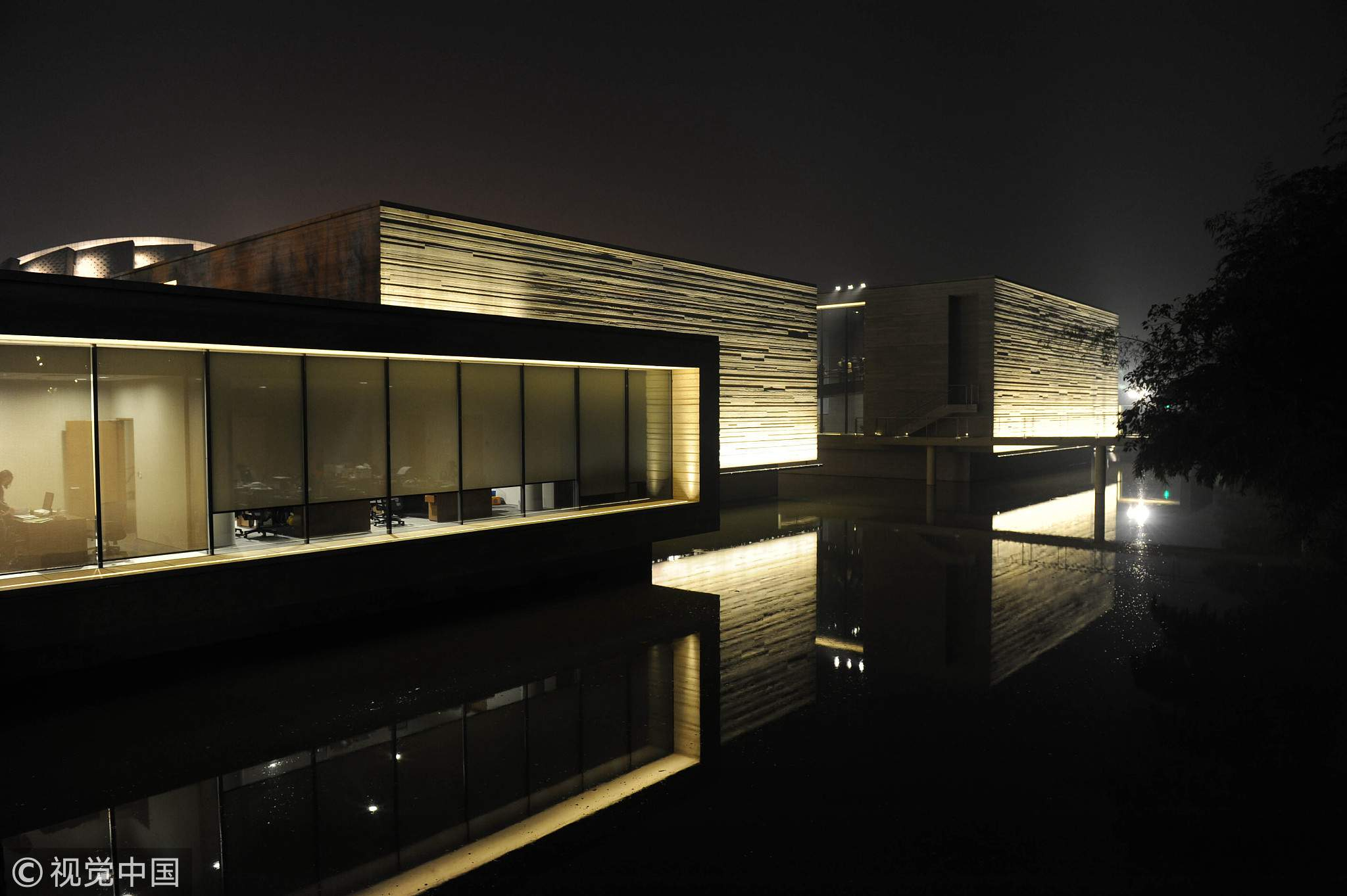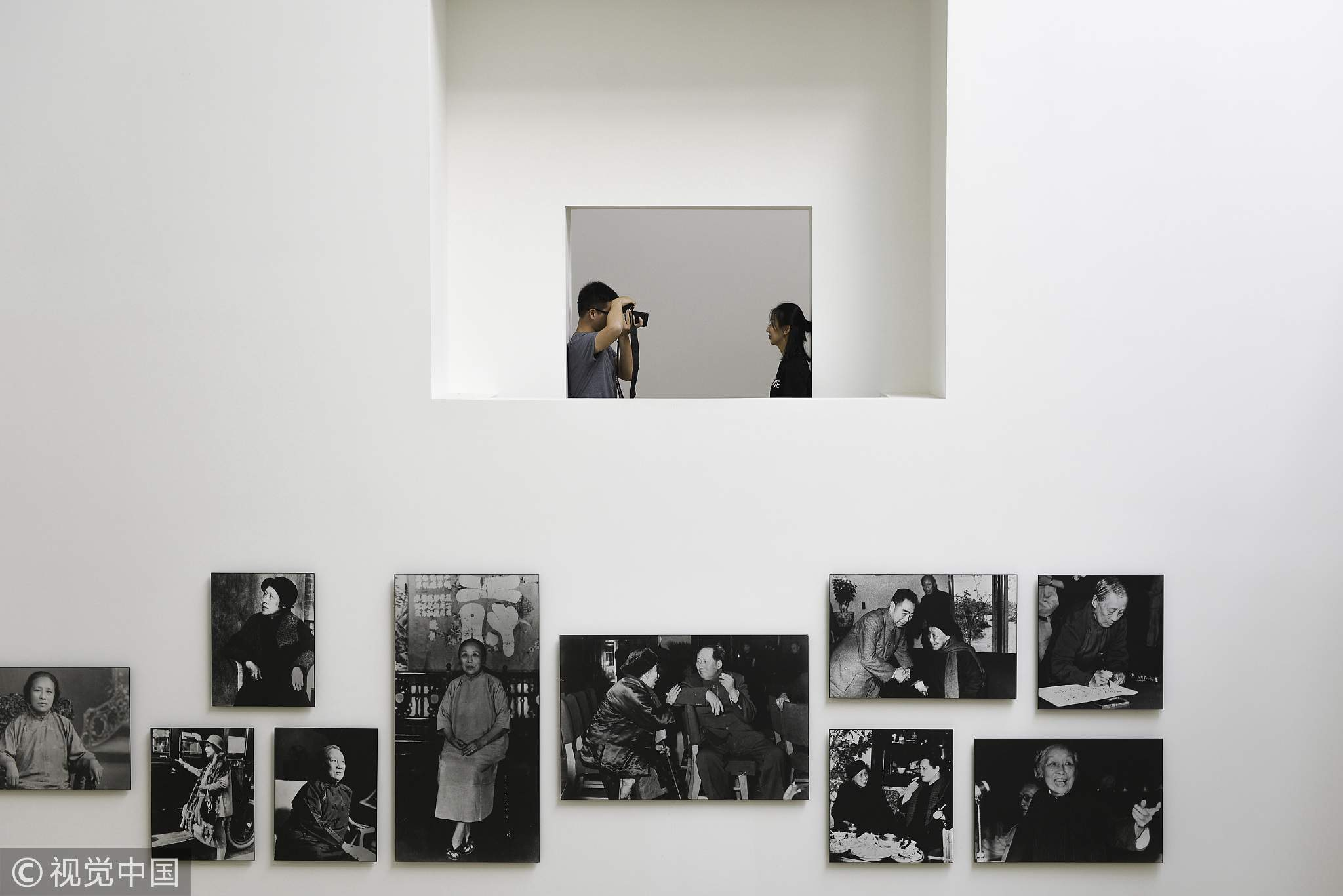Two people take photos at the He Xiangning Art Museum in Shenzhen, October 29, 2017. /VCG Photo