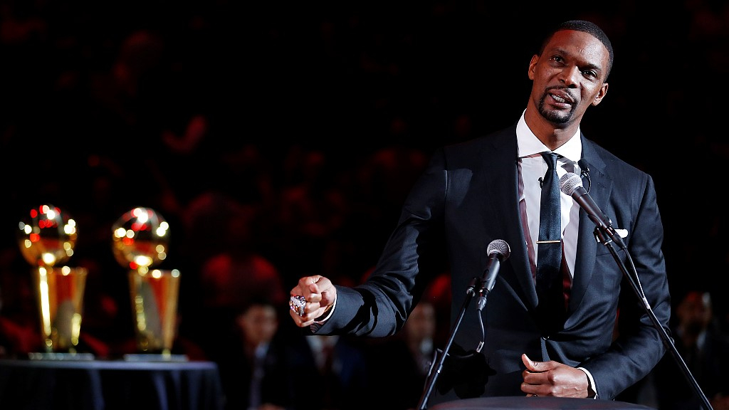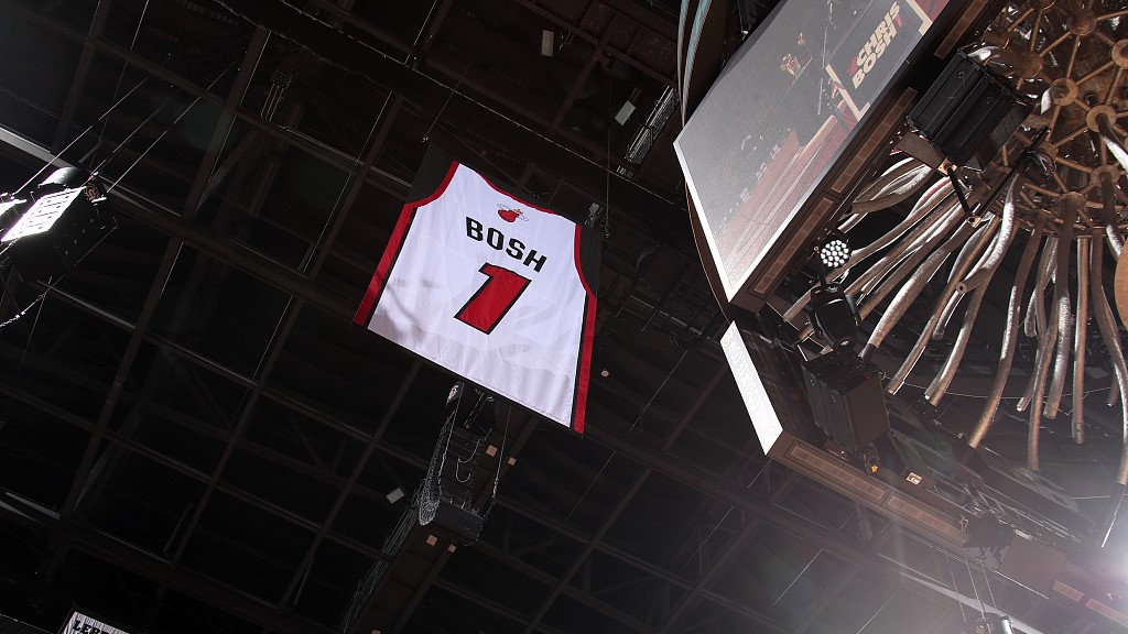 As the No.1 jersey rose up inside the home court of the Miami Heat, its owner, 35-year-old Chris Bosh joined Alonzo Mourning, Tim Hardaway and Shaquille O'Neal to become Miami's fourth player who had their number retired.