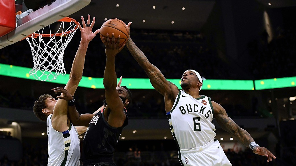Though Tuesday's game was about competition between Harden and Antetokounmpo, the two biggest candidates of the NBA MVP this season, neither of them had many astonishing performances on the court, partially thanks to the defensive tactics of the two teams. When your super star was limited, others of the team must stand out and for the Bucks, Bledsoe was the guy.