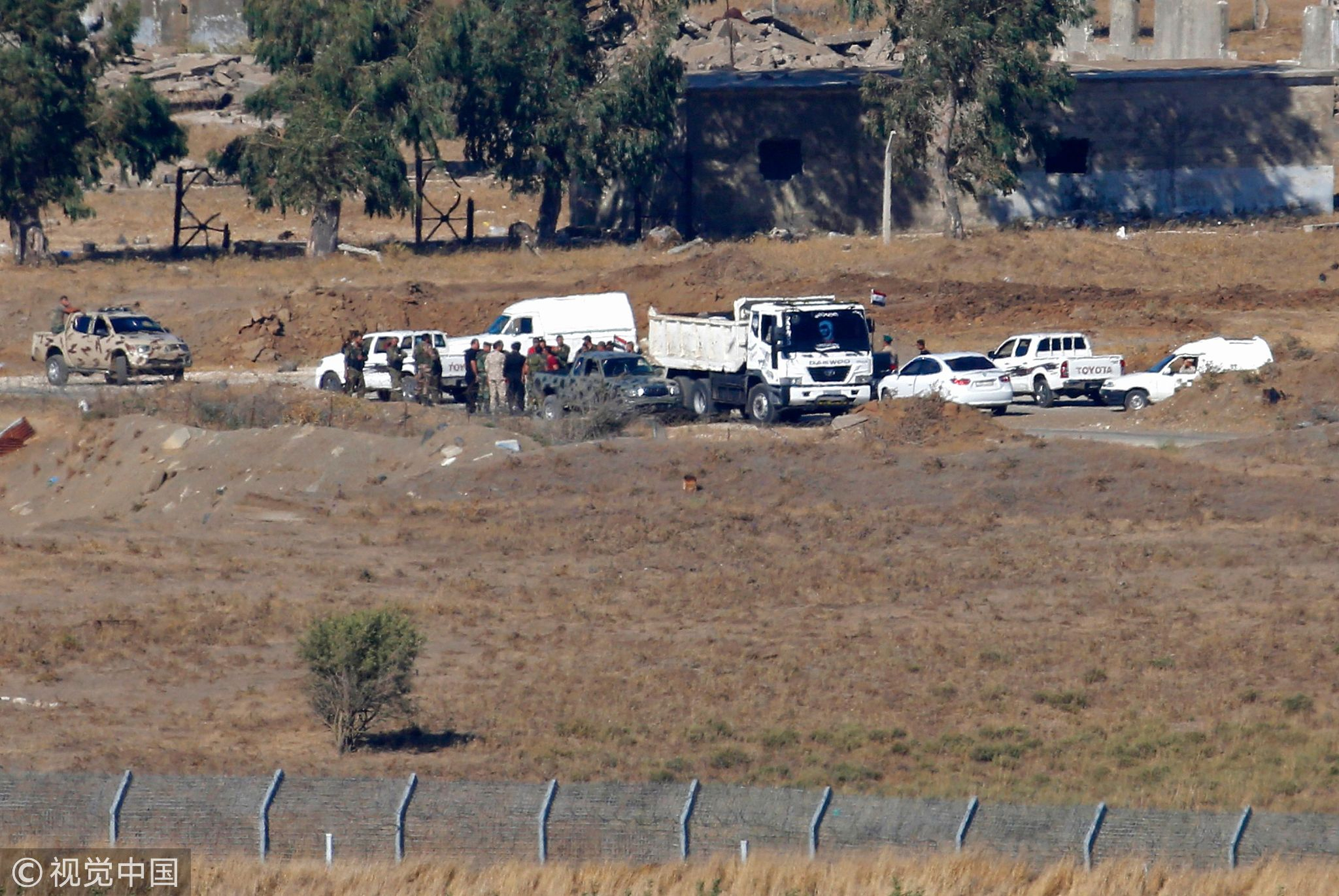 Syrian officials and members of the security forces are seen across the border as Syrian government forces retake their positions from the rebels, July 26, 2018. /VCG Photo