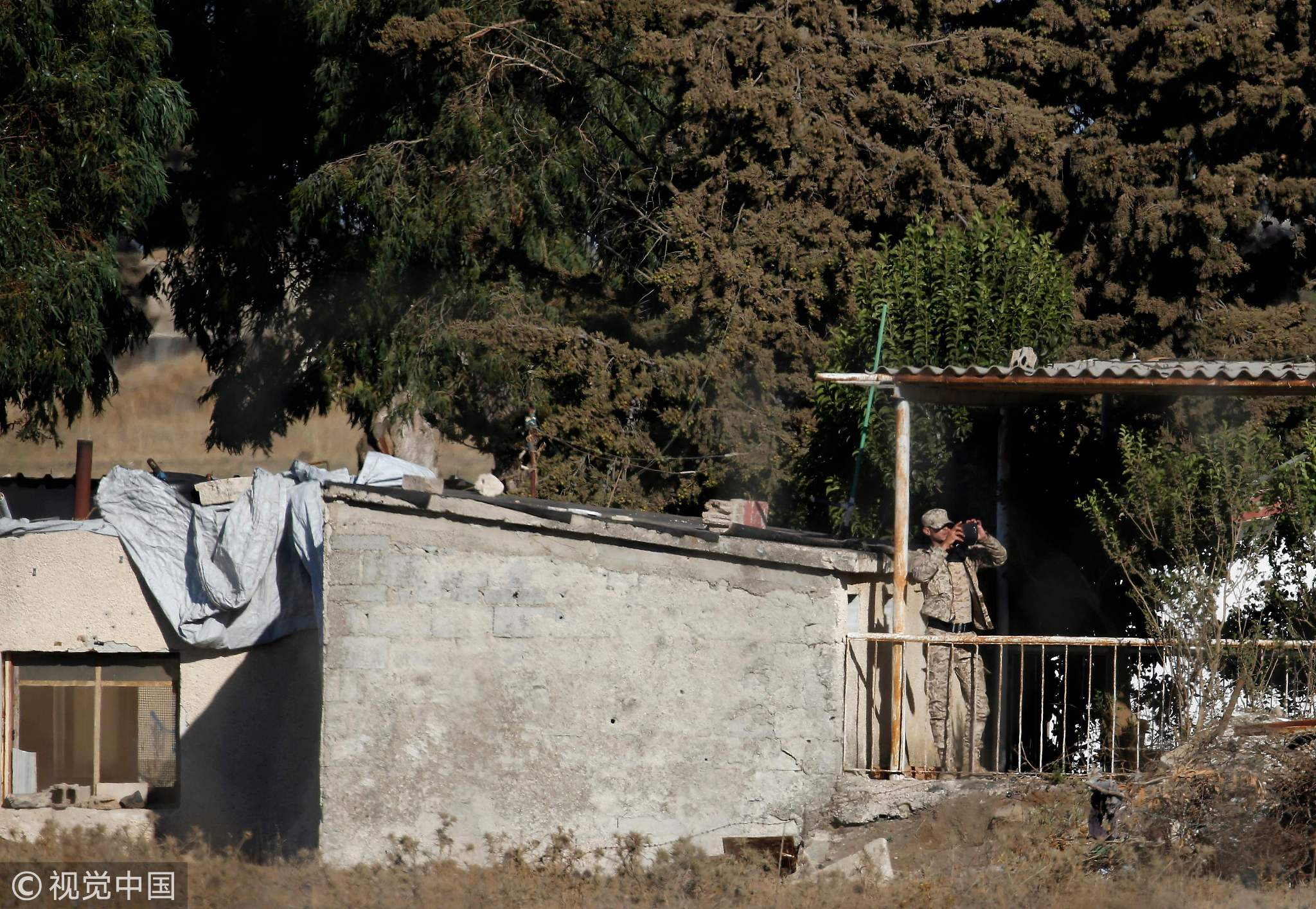 A member of the Syrian security forces looks through a telescope as Syrian government forces retake their positions from the rebels. /VCG Photo