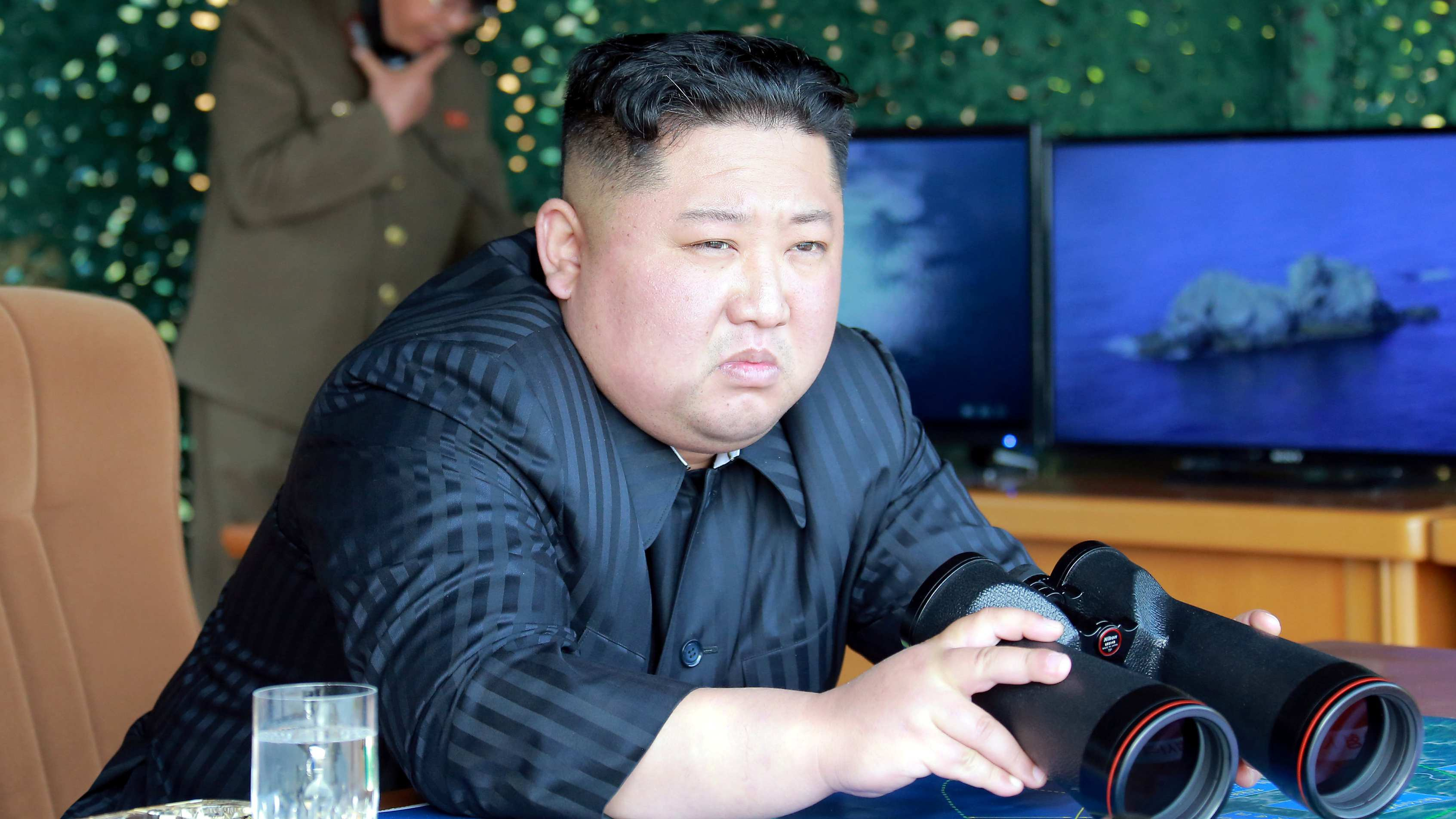 DPRK's leader Kim Jong Un supervises a "strike drill" for multiple launchers and tactical guided weapon into the East Sea during a military drill in DPRK, in this May 4, 2019 photo supplied by the Korean Central News Agency (KCNA) via Reuters