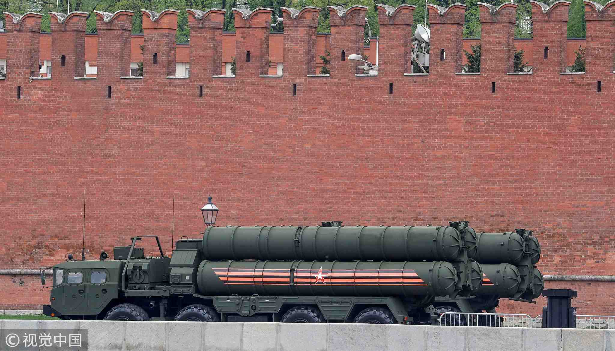 Russian S-400 Triumph medium-range and long-range surface-to-air missile system is seen along the Kremlin wall during a rehearsal for the Victory Day parade in Moscow, Russia May 6, 2018. /VCG Photo