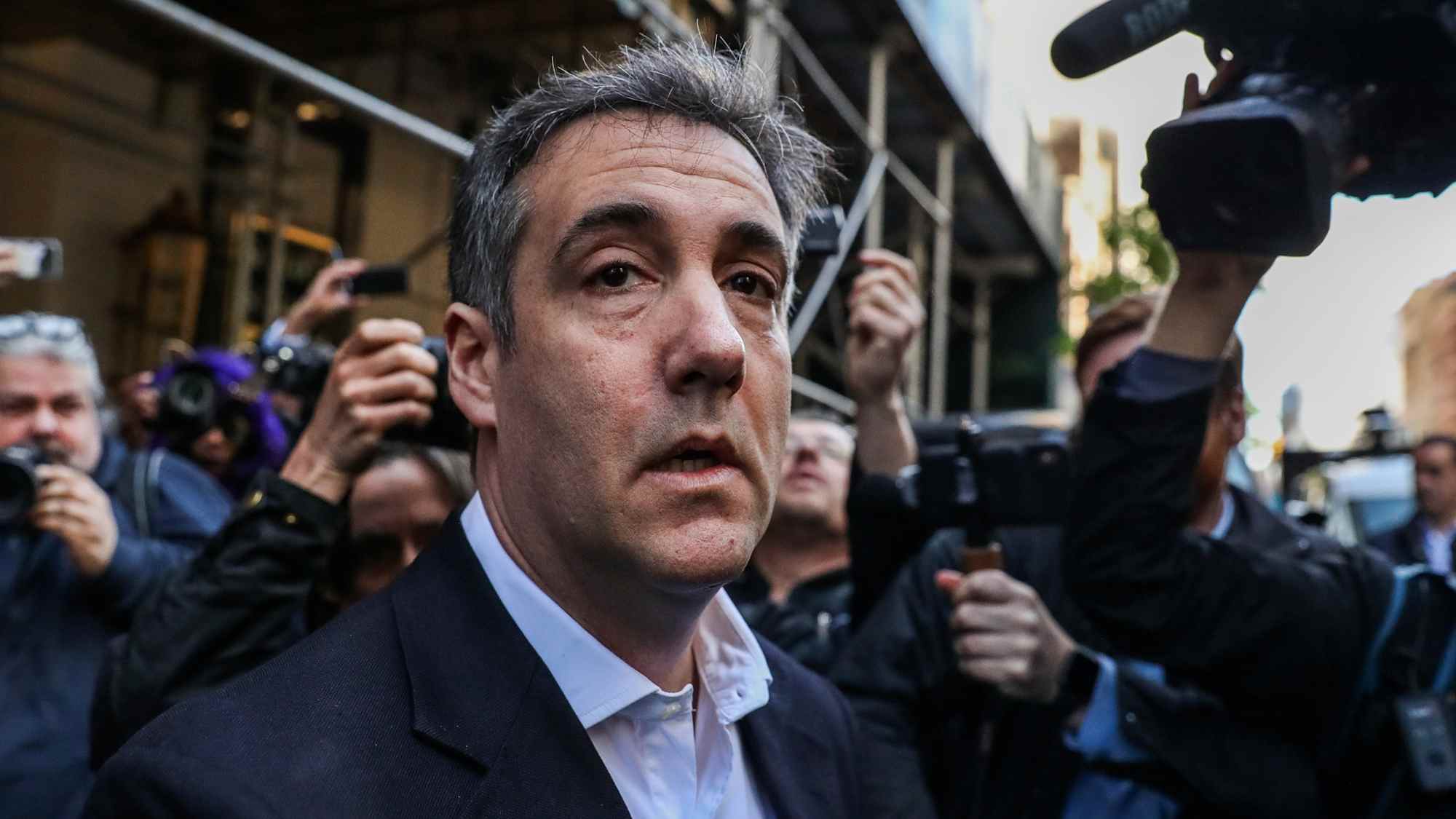 Several dozen bystanders stopped to take pictures, and one shook his hand. After Cohen made his remarks, the scene became chaotic, with equipment and people falling to the ground. Cohen helped one journalist to get back on his feet. Cohen then climbed into the SUV.