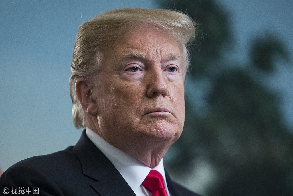 U.S. President Donald Trump listens to remarks from Prime Minister of Israel Benjamin Netanyahu (unseen) in Washington DC, U.S., March 25, 2019. /VCG Photo