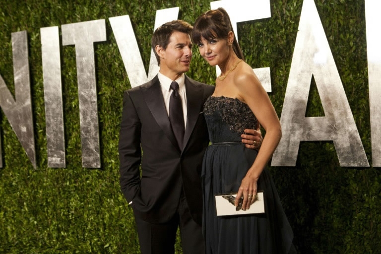 Tom Cruise (L) and ex-wife Katie Holmes arrive at a Vanity Fair Oscar Party on February 26, 2012 in West Hollywood, California. /AFP Photo