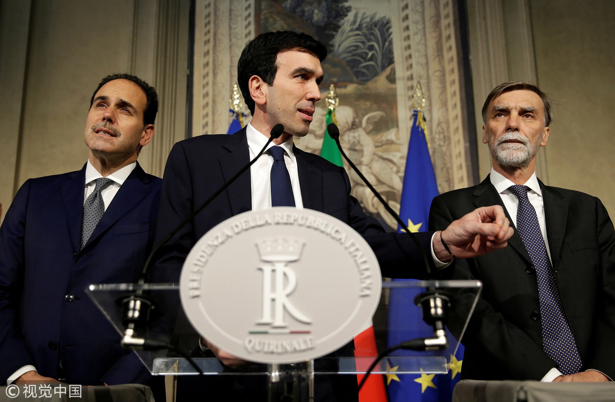 Democratic Party (PD) member Maurizio Martina speaks following a talk with Italian President Sergio Mattarella at the Quirinale palace in Rome, Italy, April 12, 2018. /VCG Photo
