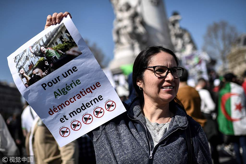 Protesters rally to demand an end to Algerian President Abdelaziz Bouteflika's rule in Paris, France, March 31, 2019. /VCG Photo