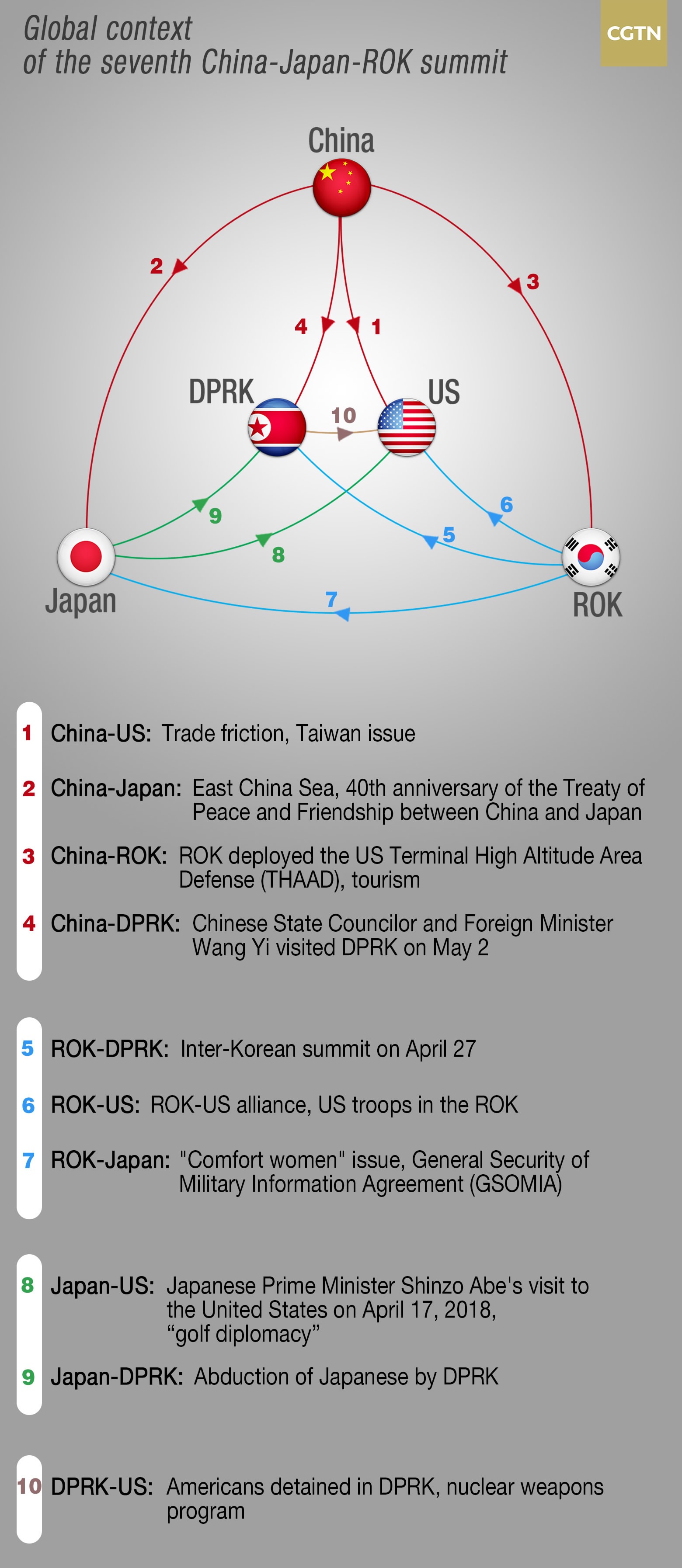 "Cooperation between the three countries on the Korean Peninsula is of great significance to the construction of a comprehensive cooperative relationship between China, Japan and ROK," Jin Linbo, researcher of China Institute of International Studies said, "but it is not clear that the 7th China-Japan-ROK summit will be able to achieve concrete results."