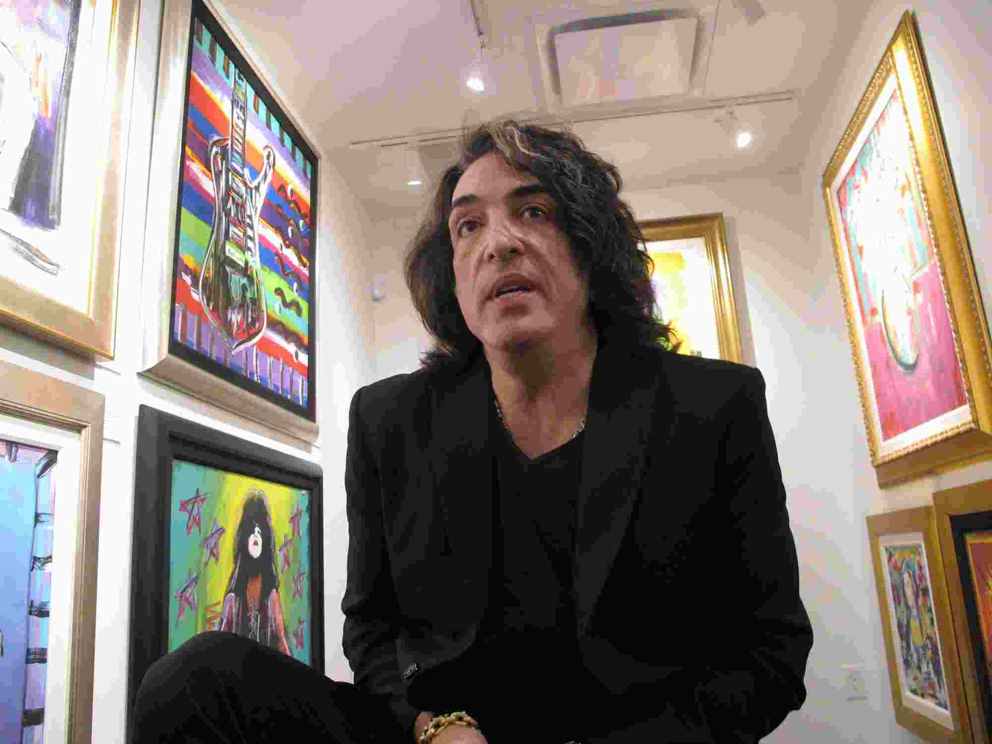 Paul Stanley, singer and guitarist for the rock group Kiss, speaks during an interview sitting between his artwork at a gallery in Atlantic City, New Jersey, US, October 13, 2018. /AP Photo