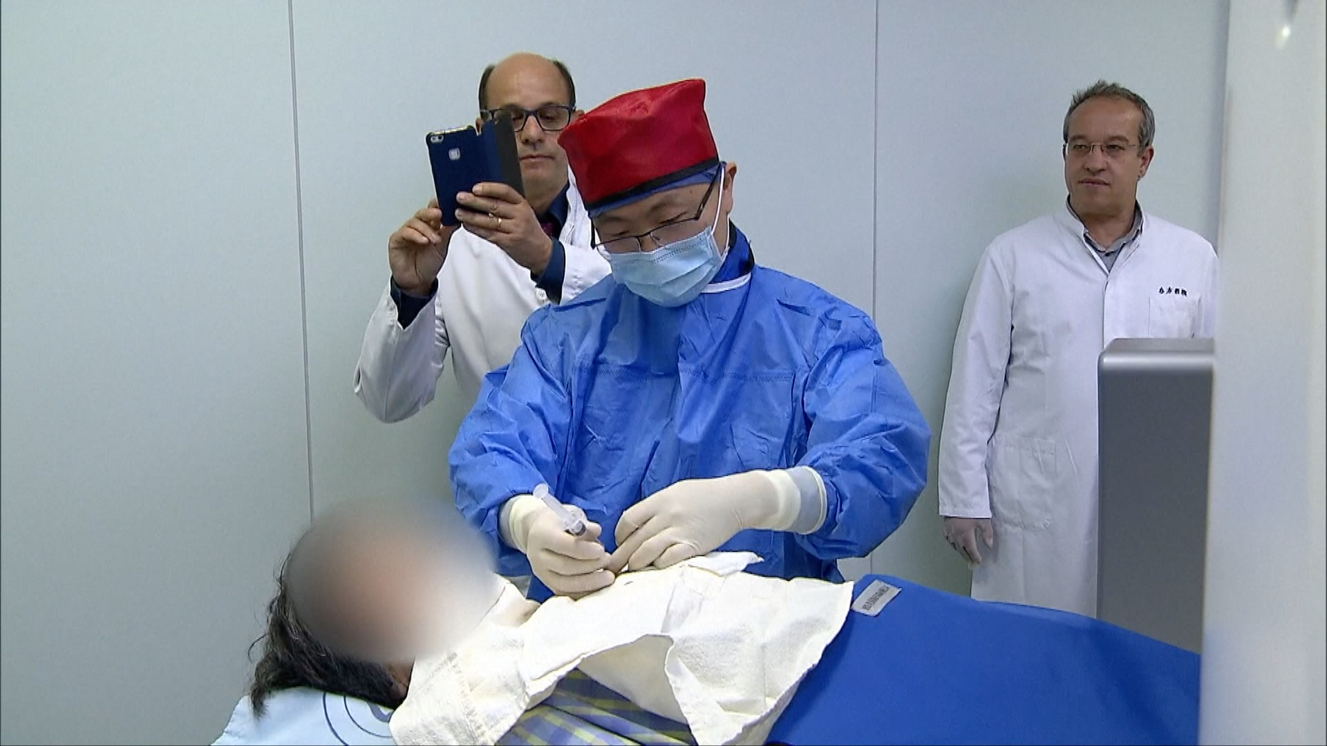 The world's first surgery on a lung cancer patient using "Nano gun" technology was implemented at the Shanghai East Hospital on Thursday. Developed by Chinese and French scientists, the Nano gun technology is a new minimally invasive treatment which can be used on patients with tumors. Patients are injected with the radioactive element rhenium-188 covered with Nano particles into the tumor tissue to kill tumors.