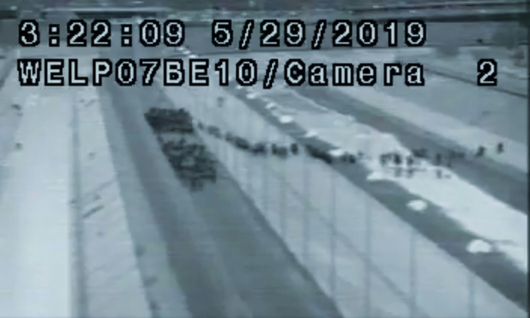A Border Patrol surveillance video that President Donald Trump shared on Twitter shows people filing under a chain-link fence to a spot on the U.S. side, where they waited for agents to pick them up. Authorities said it took about five minutes for all to cross around 4 a.m. on Wednesday near downtown El Paso.