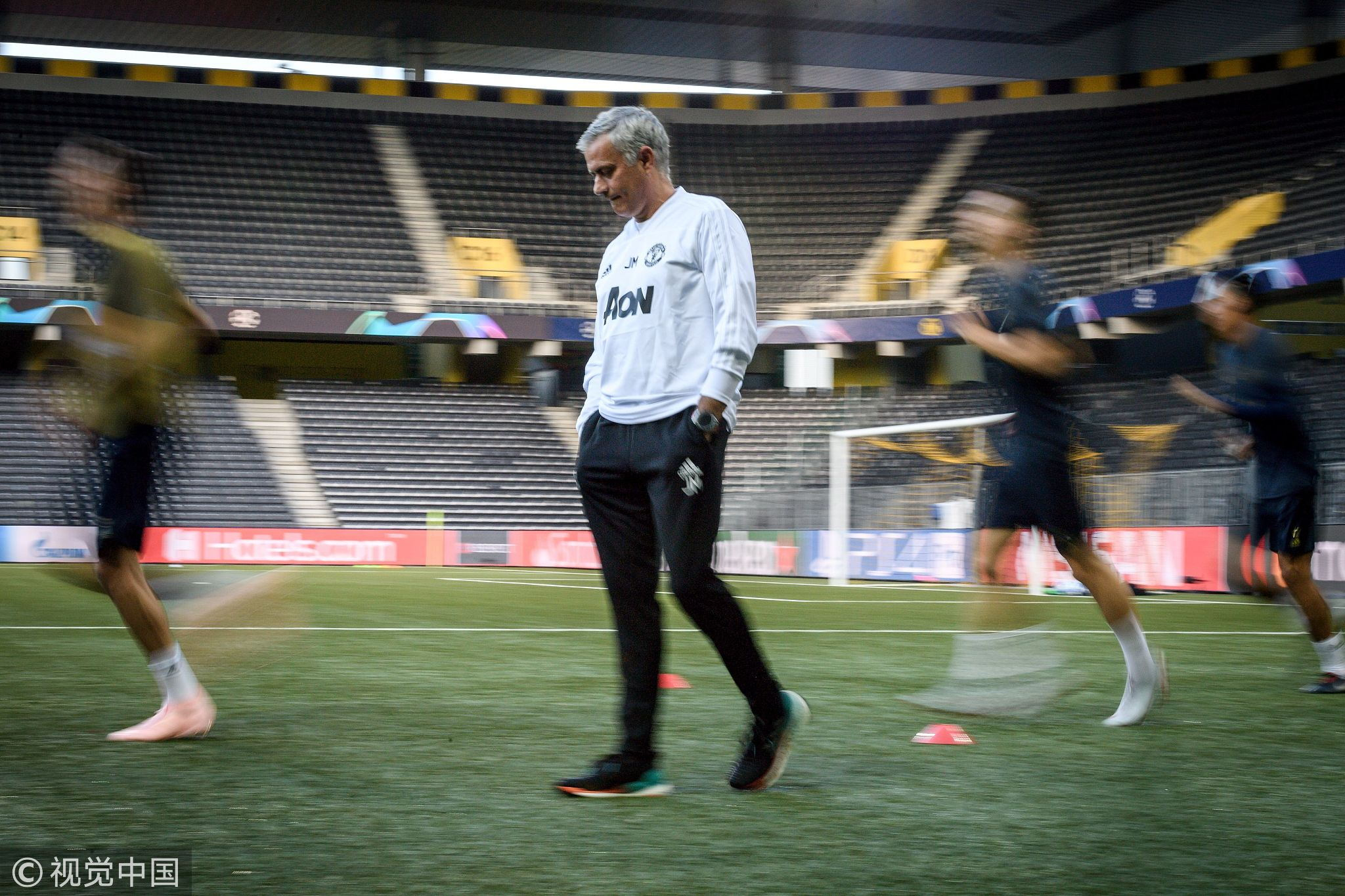 Manchester United's Portuguese manager Jose Mourinho takes part in a training session on the eve of the UEFA Champions League football match between Bern Young Boys and Manchester United at the Stade de Suisse stadium on Sept. 18, 2018 in Bern. /VCG Photo