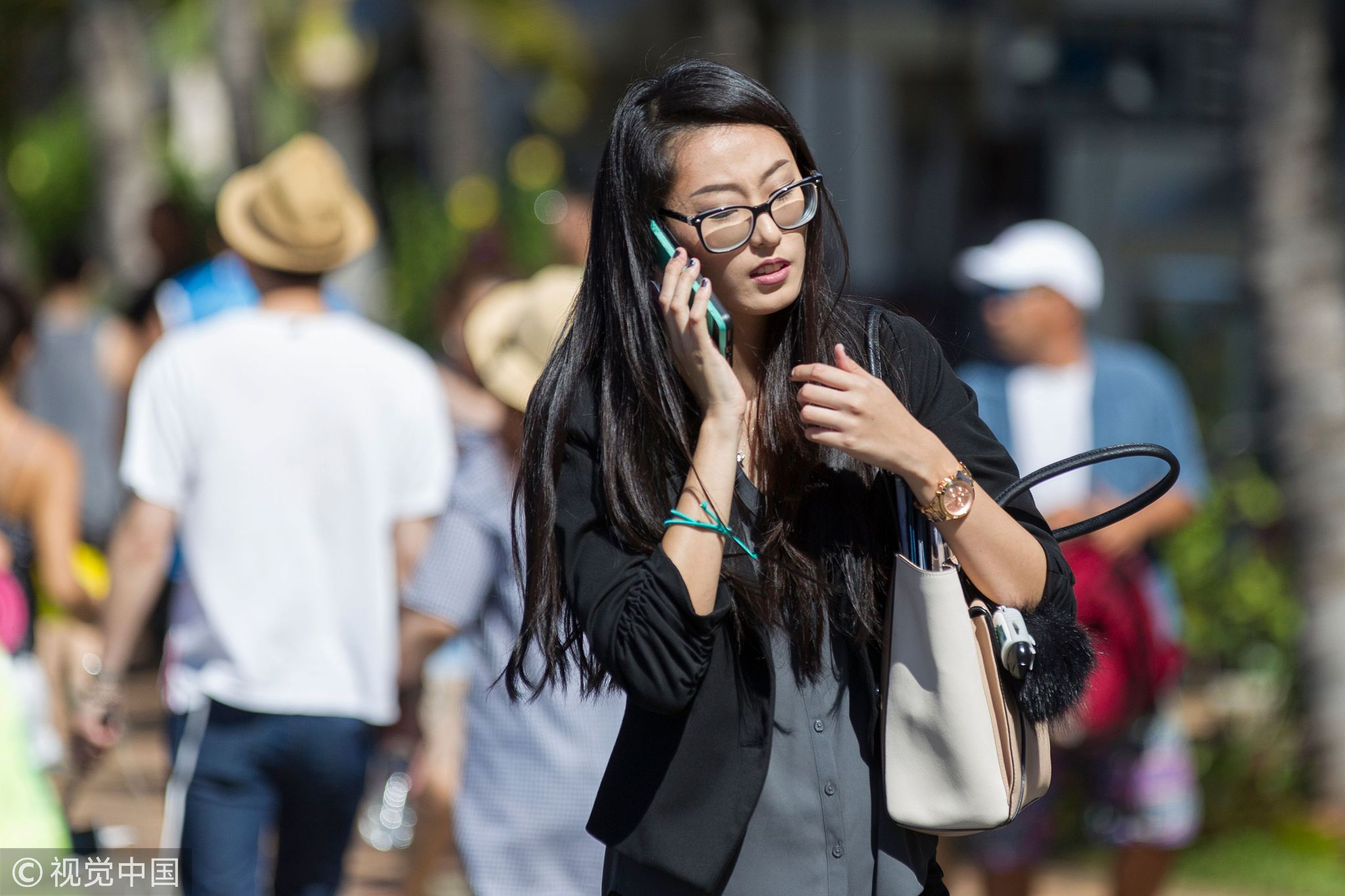 October 24, 2017: A pedestrian talks on her cell phone while crossing Kalakaua Avenue in Honolulu, Hawaii. /VCG Photo