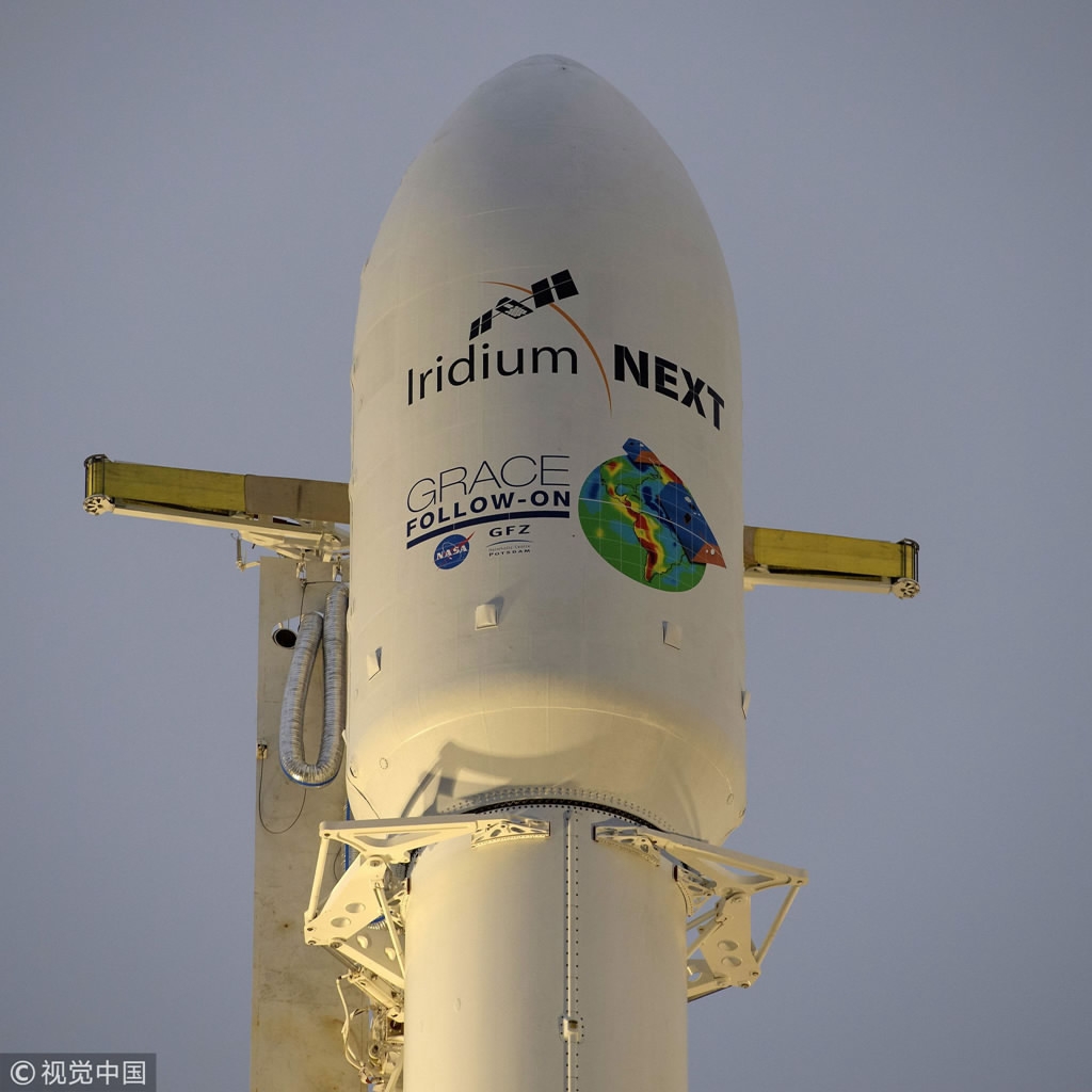 The SpaceX Falcon 9 rocket is seen with the NASA/German Research Centre for Geosciences GRACE Follow-On spacecraft and onboard, May 21, 2018, at Space Launch Complex 4E at Vandenberg Air Force Base in California, US. /Photo via VCG