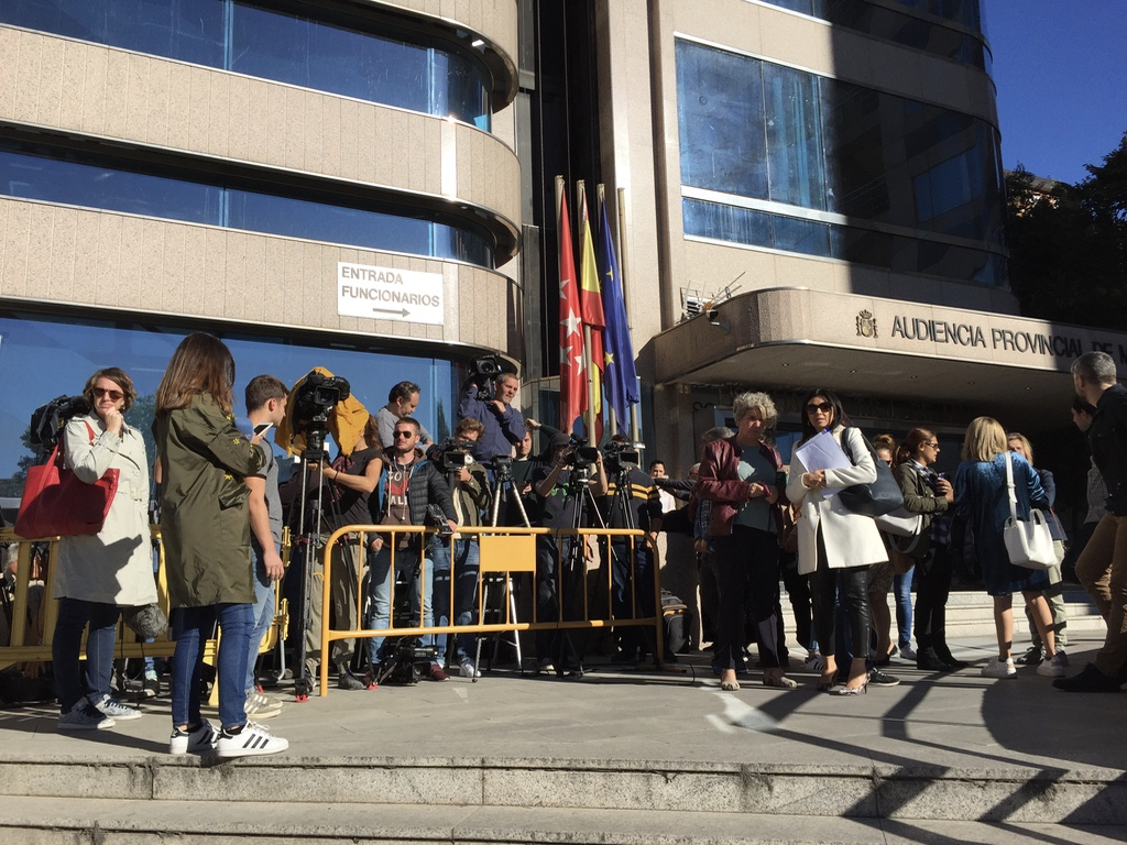 Media outside Madrid court for "stolen babies" verdict, October 8, 2018. /CGTN Photo