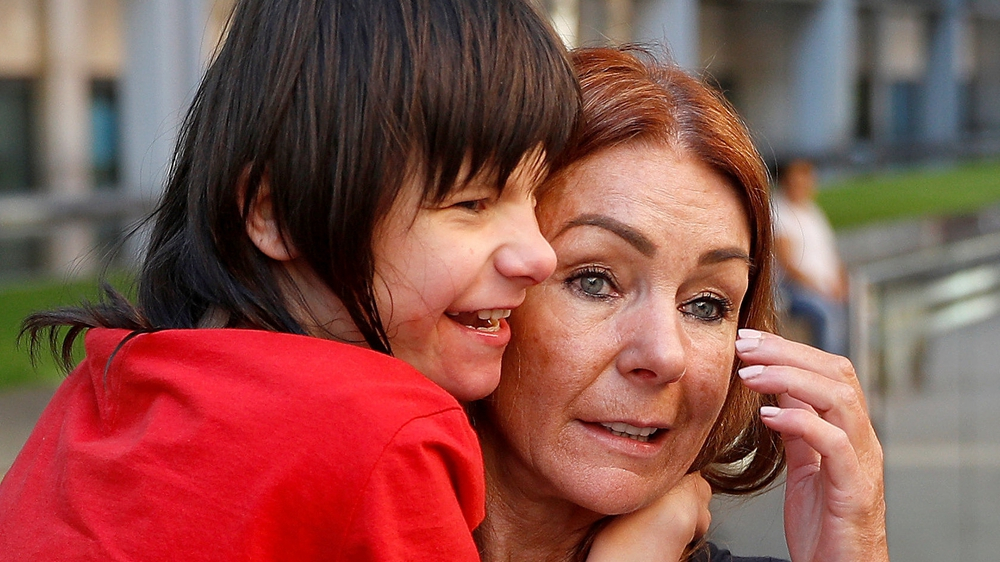 Charlotte Caldwell and her son Billy after a meeting with officials to discuss how Billy can have his severe epilepsy treated with cannabis oil in London, June 11, 2018. /VCG Photo