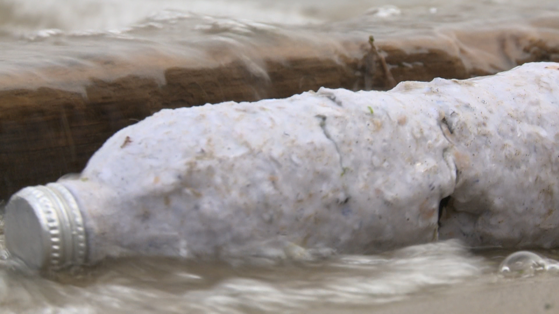 Within minutes of the bottle being washed around by the waves, the hard paper case began to soften and fall away. /FSN Photo