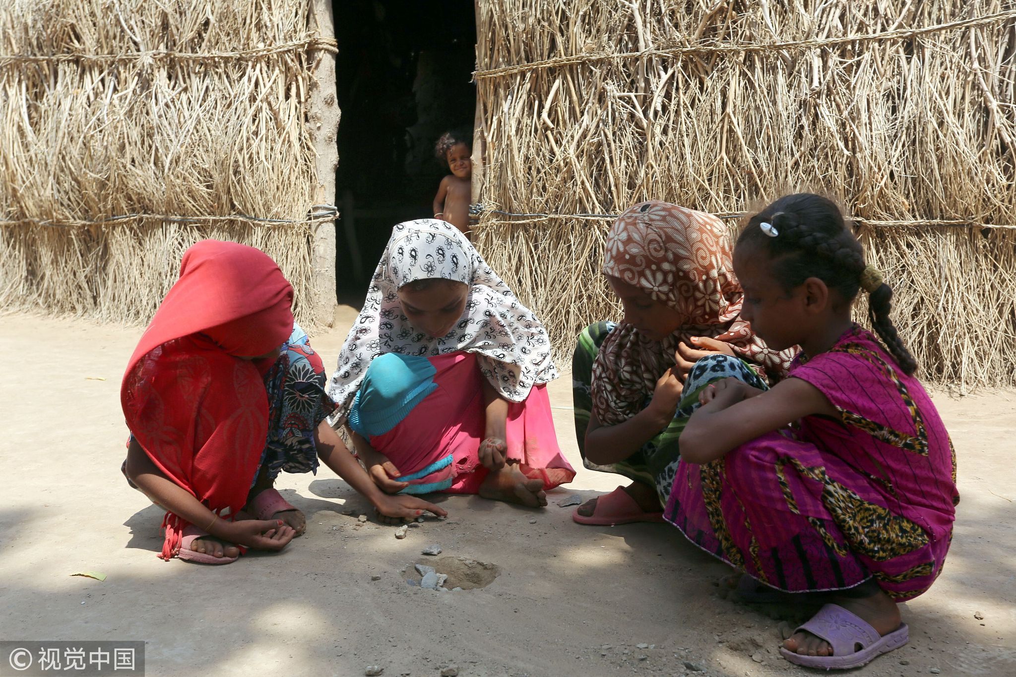 Yemeni girls play on September 26, 2016 in an impoverished coastal village on the outskirts of the rebel-held Yemeni port city of Hodeida, where malnutrition has hit the population hard. /VCG Photo