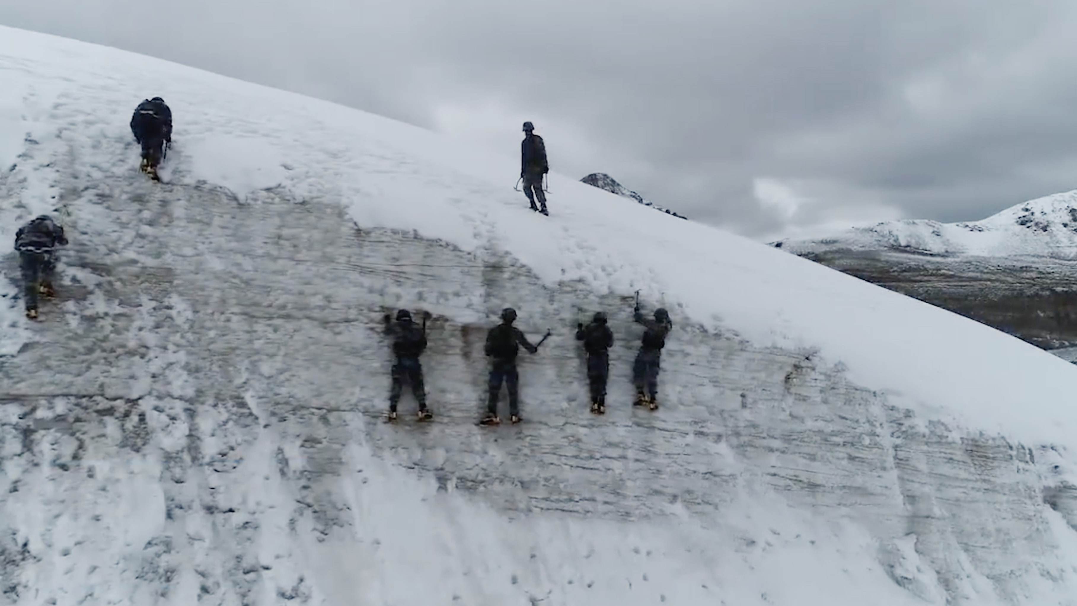 “Tanggula” in Tibetan means mountains that eagles cannot fly over. Simply standing at the foot of the glacier at an altitude of over 5,500m is like lifting a 30kg weight. A brigade from the Tibetan Military District came here to climb the glaciers and, with professional climbing tools, it took only 19 minutes for the soldiers to make it to the top, and 12 minutes to come back down.