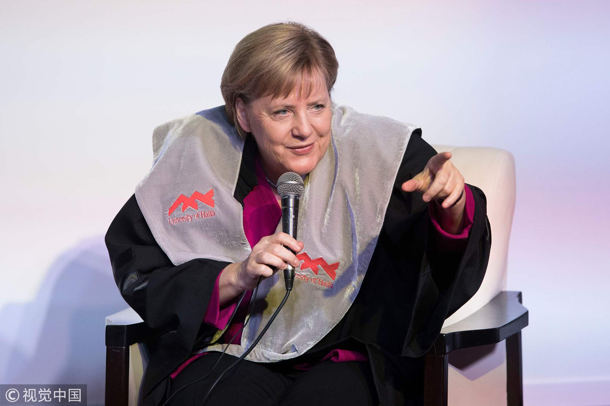 German Chancellor Angela Merkel receives an honorary doctorate from Haifa University at the Israel Museum in Jerusalem, October 4, 2018. /VCG Photo