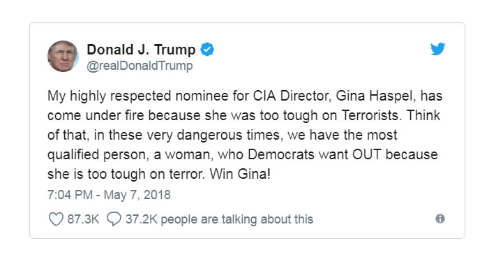 On May 9th, the public will finally hear Haspel’s take. during her nomination hearing. According to Reuters news agency, Haspel will use the hearing to promise never to restart such interrogation and detention programs again.