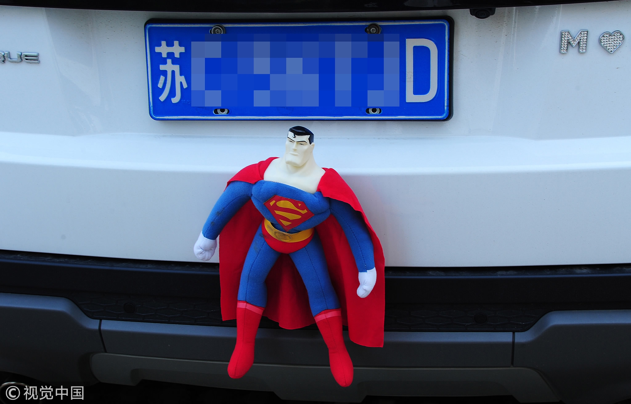Super heroes are always popular dolls to put on the car roof. /VCG Photo