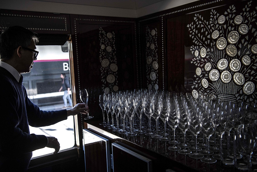 After seven years of restoration with precision as well as spending more than 15 million U.S. dollars, SNCF is exhibiting seven carriages of the restored train at Gare de l'Est station in Paris this week. /VCG Photo