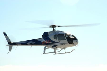 The two-ton-level new helicopter model is undergoing flight tests at the Qinghai Yushu Airport in northwest China's Qinghai Province, located at an altitude of 4,000 meters, said AVIC.