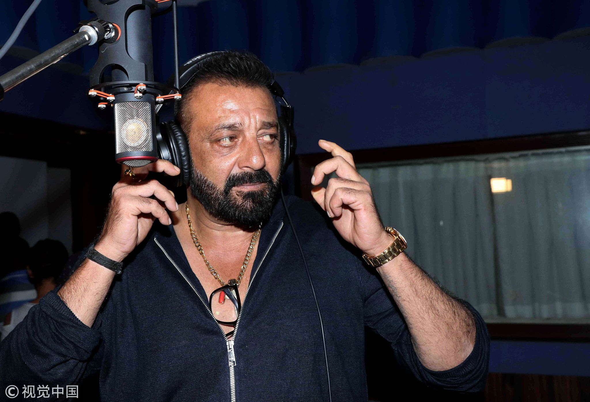 Indian Bollywood actor Sanjay Dutt during the recording of the song 'Ganesh Aarti' for Hindi film 'Bhoomi' in Mumbai. Bollywood actor Sanjay Dutt returned to Indian cinema screens on September 22 in his first film since serving four years in prison for possessing weapons supplied by gangsters behind the 1993 Mumbai bomb blasts. /VCG Photo