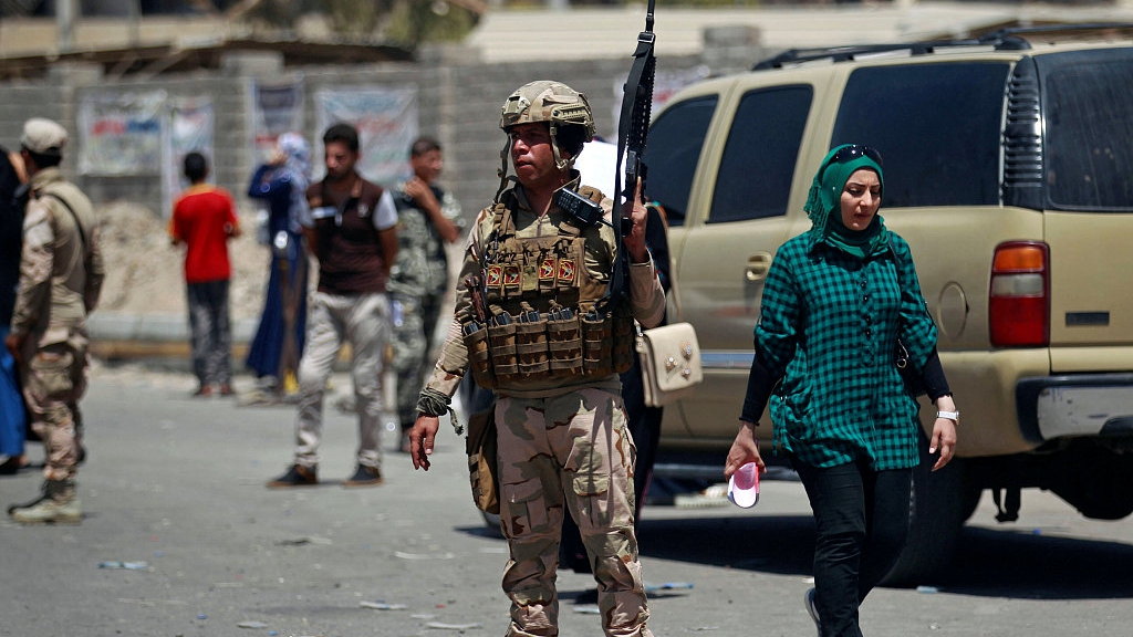 A soldier stands guard at the University of Mosul, Iraq, July 24, 2017. /VCG Photo