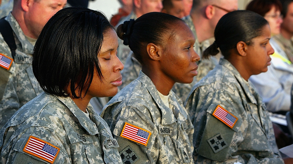 U.S. military staff attend an Easter sunrise service at Camp Liberty in Baghdad, Iraq. /VCG Photo