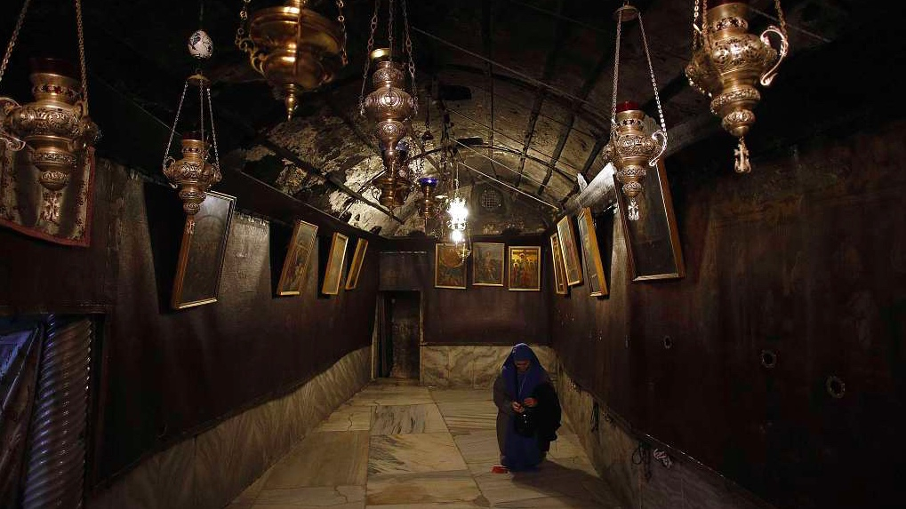 A Christian worshiper is seen inside the Grotto of the Nativity, December 17, 2014. /VCG Photo