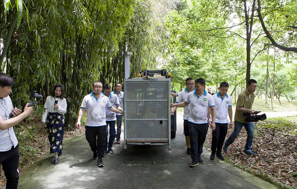 The two pandas arrived at the Dujiangyan Base of the China Conservation and Research Center for Giant Pandas on Thursday morning in good condition. /VCG Photo