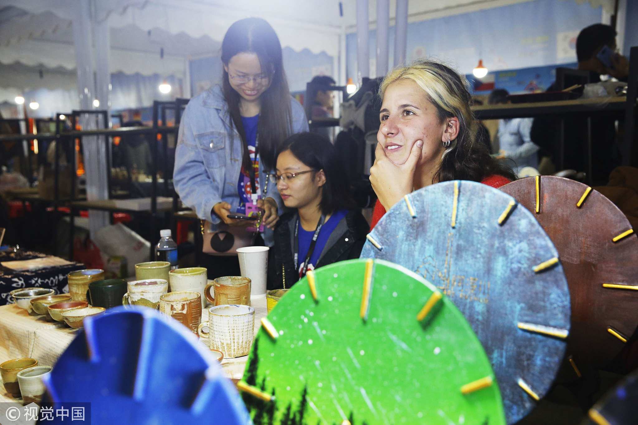 Attendees communicate at the international ceramic fair in Jingdezhen, Jiangxi Province. /VCG Photo