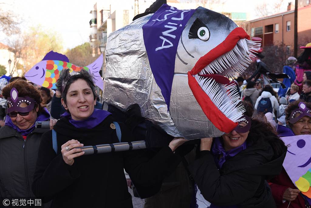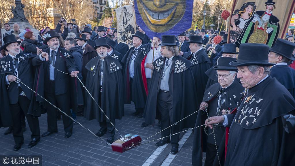 The traditional “Burial of the Sardine,” a ceremony to mark the end of carnival celebrations and beginning of 40 days of the season of Lent, which precedes Easter, took place in the Spanish capital Madrid, on March 6, 2019. /VCG Photo