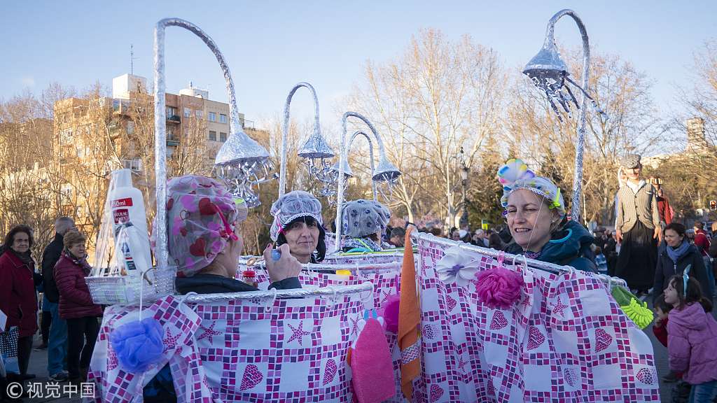 The ceremony consists of a parade that parodies a funeral in which a symbolic figure in the shape of a sardine is burned. /VCG Photo
