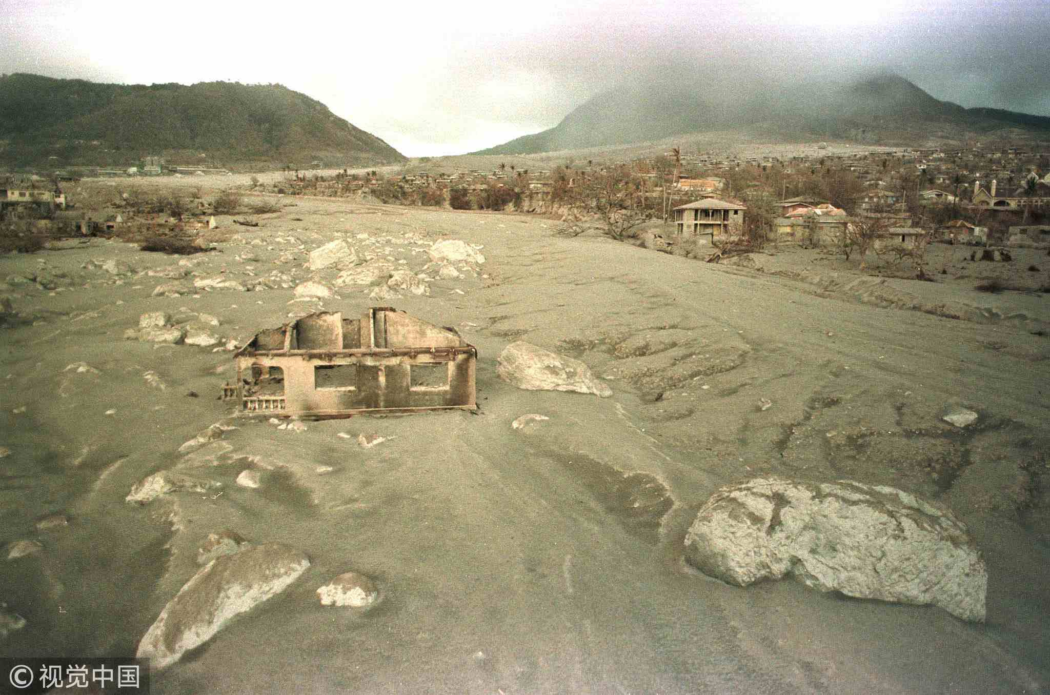 The main path of a pyroclastic flow from the Soufriere Hills volcano in Plymouth. /VCG Photo