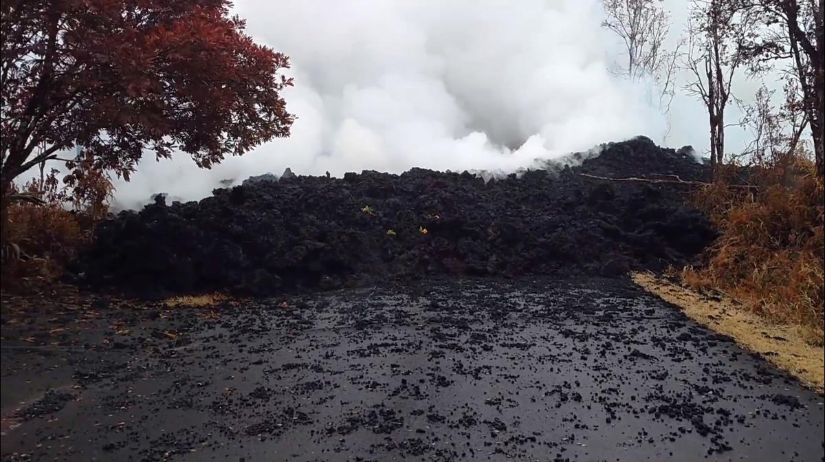 Deposits are seen on a road in Puna, Hawaii. /Reuters Photo