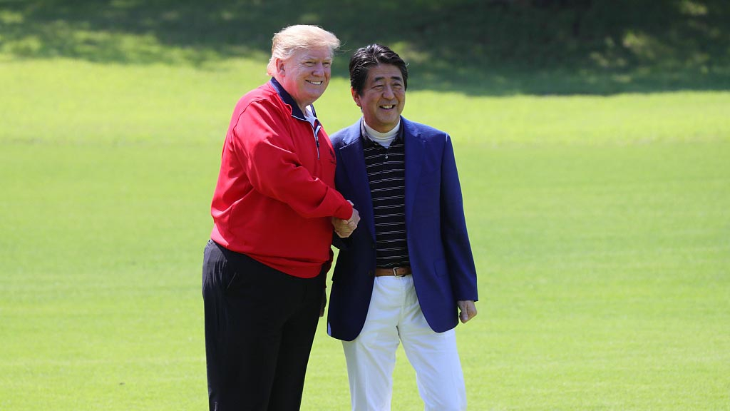 U.S. President Donald Trump is in Japan for a four-day visit, which he began on Saturday. On the second day of his visit, he played a round of golf with Japanese Prime Minister Shinzo Abe. Abe and Trump then attended a sumo tournament. Trump is the first U.S. president to attend such an event. He'll meet with the new Emperor Naruhito on Monday. Afterward, Trump will meet with Abe and visit Yokosuka harbor.