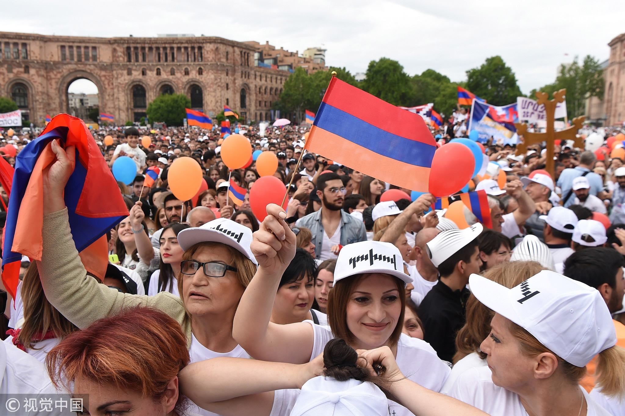 People gather to support the opposition leader Nikol Pashinyan who attends the election of the RA Prime Minister at the special sitting of the National Assembly of Armenia, at the Republic Square in Yerevan, Armenia, May 08, 2018. /VCG Photo